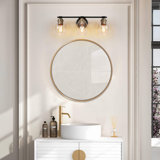 Xelovan 3-Light Black and Brass Bathroom Vanity Light