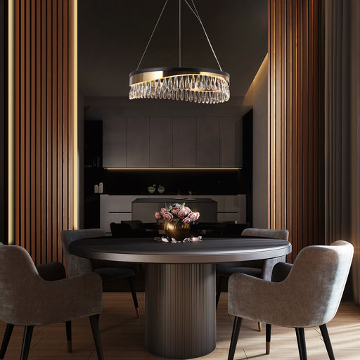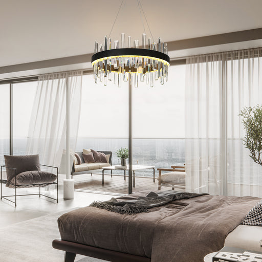 Item Number: A04965 Collection: Andrel Material: Crystal Color: Black and Brass Finish: Electroplated Gold, Matte Black Shade Type: Cr...