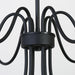 Graceful arcs of slender black arms extend outward in perfect balance, each ending in a candle-like light that glows with quiet elegance. The minimalist silhouette feels light yet dramatic, capturing a sense of movement as if the fixture were gently unfolding in midair. Its matte black finish adds depth and refinement, creating a striking centerpiece that brings both warmth and modern artistry to any room.
