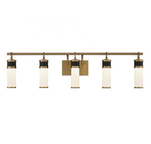 View full detailsAbel 5-Light LED Bathroom Vanity Light in Matte Black with Warm Brass Accents