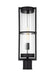 Alcona transitional 1-light LED outdoor exterior post lantern in black finish with clear fluted glas