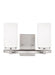 The Alturas two light vanity fixture in brushed nickel offers shadow-free lighting in your powder room, spa, or master bath room. The silhouette of the modern Alturas lighting collection by features an interlocking, spherical steel frame, which harkens back to the Unisphere constructed for the 1964 New York World's Fair. The minimalist Alturas Collection draws the eye to the soft, warm glow of the light emitted from the cylindrical Satin Etched glass shades. The full assortment includes three-, five- and nine-light chandeliers, a one-light mini pendant, a three-light pendant, a two-light semi flush which is convertible into a pendant, and one-, two-, three- and four-light bath fixtures. All fixtures are offered in Brushed Oil Rubbed Bronze, Brushed Nickel and Satin Bronze finishes, the bath fixtures are also offered in Chrome finish. Incandescent and ENERGY STAR-qualified LED lamping are available; all fixtures are California Title 24 compliant.