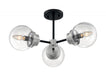 Axis - 3 Light Semi-Flush with Clear Glass - Matte Black and Brushed Nickel Finish