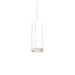 Single LED cylinder shaped pendant with clear crystal disc. Equipped with our powerful 12V AC LED technology, with metal details in white, black, brushed nickel or chrome finish. Round canopy matches the selected finish.