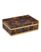 The Casey Brown Box has artisanal surfaces clad in pieces of natural penshells applied like a sophisticated puzzle. Rims of brass-finished stainless steel which enhance the warmth of the design. Though sealed, it is not watertight and should not contain water.
