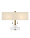 Rectangles of clear optic crystal make the Chiara Table Lamp luminous. Contrasting the pale stacked body are the antique brass finish on the metal and the off-white shantung shade.
