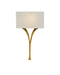 The delicately beautiful Choisy Wall Sconce is made of wrought iron in an antique gold leaf finish. The winsome curve of the wishbone shape and the slight flare at the bottom bring this gold sconce gracefulness. The sconce is fitted with a rectangular white linen shade.