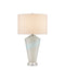 The Floating Cloud Table Lamp is made of glinting mouth-blown glass. This white table lamp with drifts of pale blue on its surface was created by a very sophisticated process that involves two artisans working together—one blowing the pastel gray textured glass while a second pours white and light-blue texture into the molten material. The body is then fitted to an equally ethereal optic crystal base and accentuated with hardware in a polished nickel finish. Because these are artisanal pieces, each one will be unique.