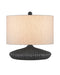 The Mythmaker Table Lamp lives up to its name, as its squashed circular body is made of terracotta in a mix of satin black and black granite finishes that make it look as if it has been forged of iron. Though there is a slight aged feel that brings the lamp added texture, it is still modern in its lines. The oversized shade paired with the flatness of the body is a stylish design detail, as is the matching finial that fastens the shade to the lamp.