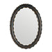 The spiked surface of a cactus informed the three-dimensional details of our oval mirror. Accented with antique brass welds to highlight the textural shape of the burnt iron frame, this unique piece showcases the artisanal craftsmanship behind its design. Made for a larger room, it can be hung horizontally or vertically. Designed with a back cleat for secure display. Hanging hardware included. Finish will vary.