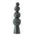 THE TOTEMIC WILMOT SCULPTURE IS DESIGNED IN A STACK OF FACETED, CHARCOAL TERRACOTTA SPHERES THAT BALANCE ON A CARVED PLINTH. INSPIRED BY GEODESIC DOMES, THE VERTICAL CERAMIC SCULPTURE IS AT ONCE EARTHY AND MODERN.