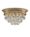 Crystal droplets rain down from the center of the Worthing Flush Mount. The opulence of the crystals contrast the perforated brass ceiling mount in an antique brass finish. The stylish juxtaposition of materials on this gold flush mount exudes both lightness and warmth.