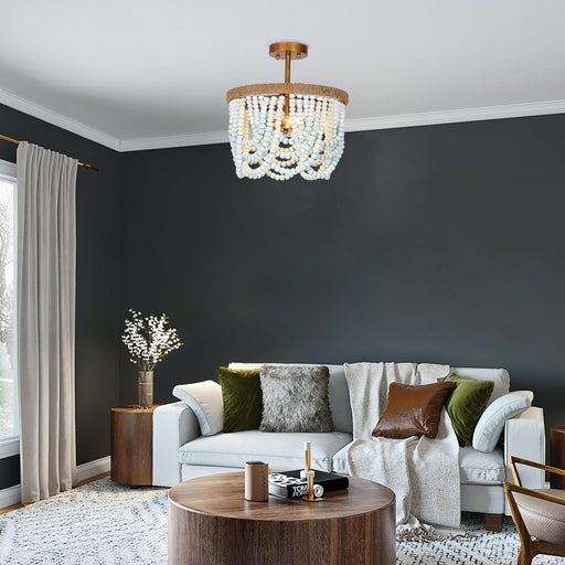 Item Number: A03924 Collection: Maugon Material: Bead Color: White Finish: Rusty, Antique Wood Beads Dimensions: 16"Dia. x 13.5"H P...